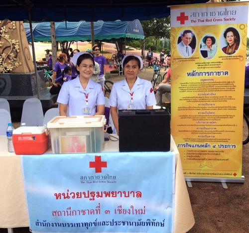 สถานีกาชาดที่ 3 เชียงใหม่ ตั้งหน่วยปฐมพยาบาลในงานวิ่งและเดินการกุศล "แคนเซอร์ แคร์ (Cancer Care)" ครั้งที่ 8