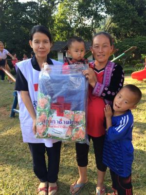 สถานีกาชาดเทพรัตน์ (สถานีกาชาดที่ ๑๓ จังหวัดตาก) บรรเทาทุกข์ภัยหนาวให้แก่ราษฎรยากจนที่อยู่ในพื้นที่ห่างไกลและทุรกันดาร