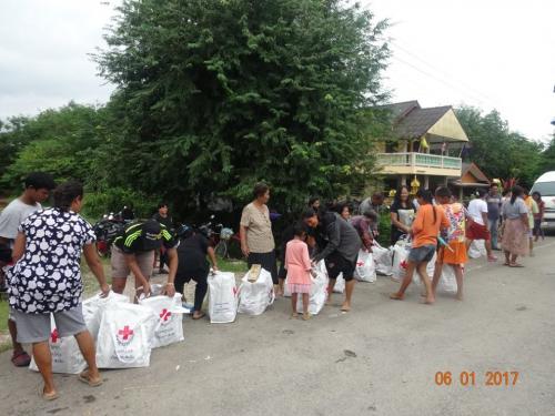 ผู้ประสบภัยอุทกภัย ตำบลท่าเรือ ตำบลนาใต้ ตำบลบ้านนา และตำบลทรัพย์ทวี อำเภอบ้านนาเดิม จังหวัดสุราษฎร์ธานี จำนวน 500 ชุด