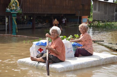 หน่วยแพทย์เรือท้องแบนสภากาชาดไทย ให้บริการตรวจรักษาโรคแก่ผู้ประสบอุทกภัย อ.บ้านสร้าง จ.ปราจีนบุรี