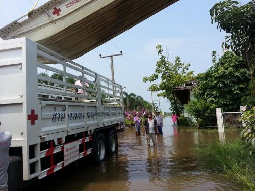 หน่วยเรือท้องแบนสภากาชาดไทย ปฏิบัติงานให้ความช่วยเหลือผู้ประสบอุทกภัย อ.บ้านสร้าง จ.ปราจีนบุรี