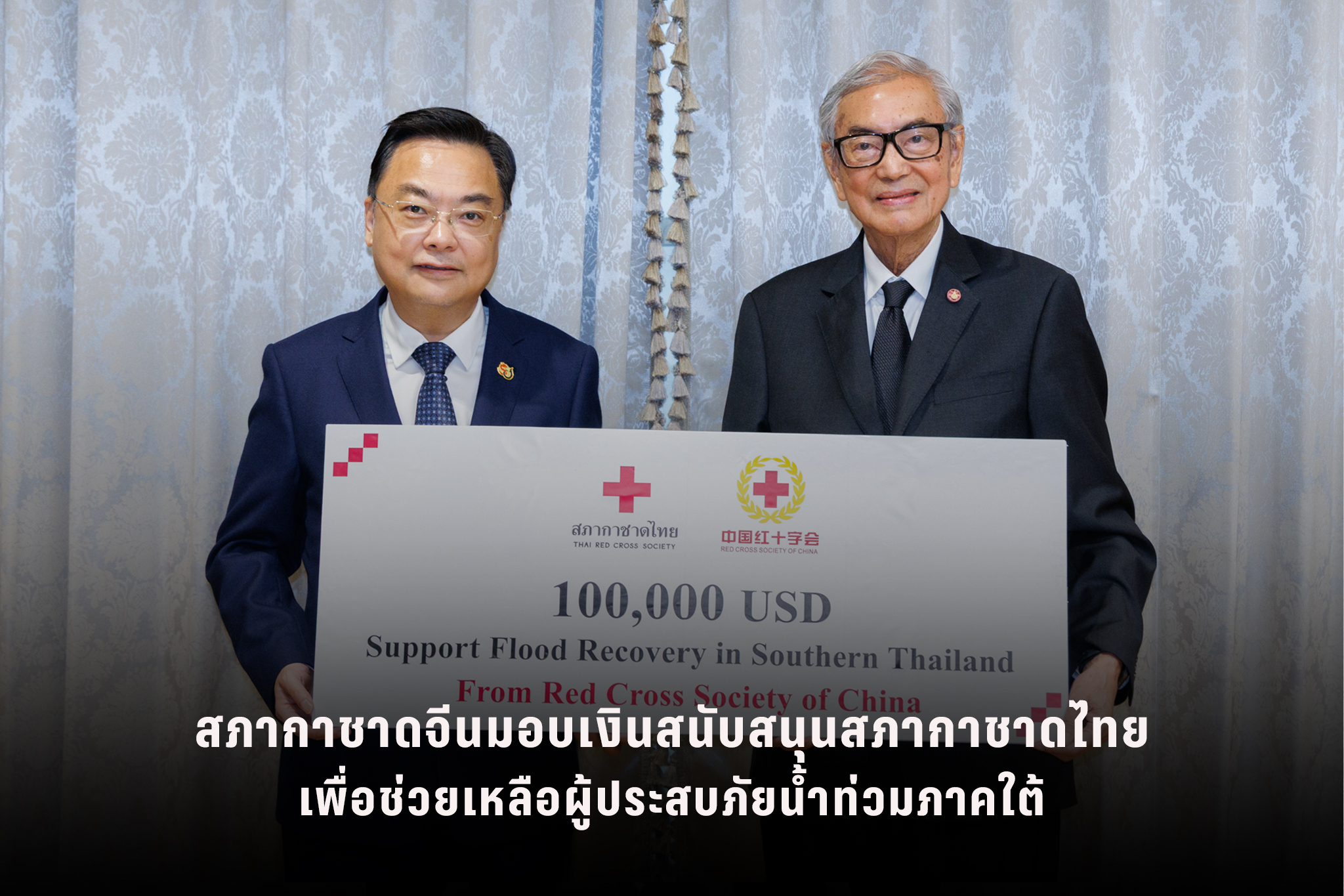 สภากาชาดจีนมอบเงินสนับสนุนสภากาชาดไทยเพื่อช่วยเหลือผู้ประสบภัยน้ำท่วมภาคใต้